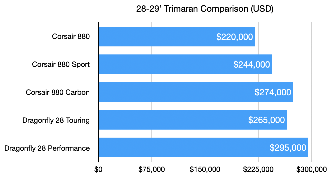 • 180 Marine offers a broader price range than ever before from Corsair and Dragonfly. From $50,000 entry level to over $1 million for 40-foot passage makers.